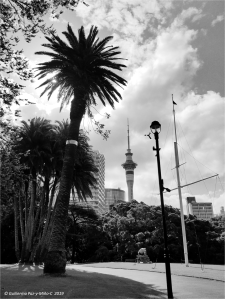 Above: a take of the beautiful “island of green” in the middle of the Auckland downtown; a vegetation patch with six old, very old imposing trees and their branches; each creature looks like a giant octopus..
