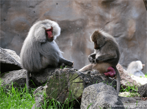 Above: Hamadryas feeding and grooming together… Auckland Zoo
