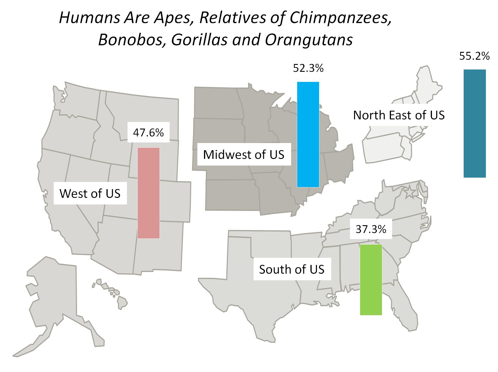 One of the significant results of the study: only 37.3% to 55.2% of educators of prospective teachers knew (or accepted) that humans are apes, relatives of chimpanzees, bonobos, gorillas and orangutans.