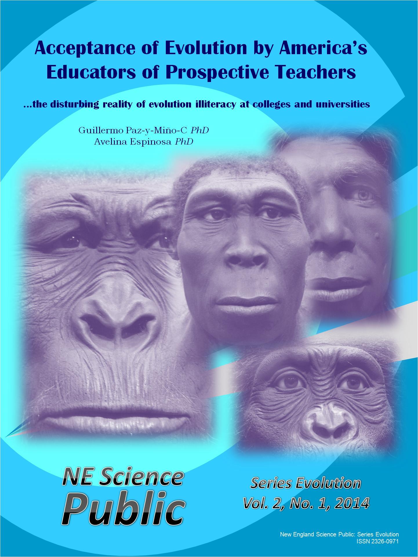 Reference: Paz-y-Miño-C, G. & Espinosa A. 2014. Acceptance of Evolution by America’s Educators of Prospective Teachers. New England Science Public: Series Evolution 2(1): 1-92. [PDF] and supplementary ‘Image Resources’.
