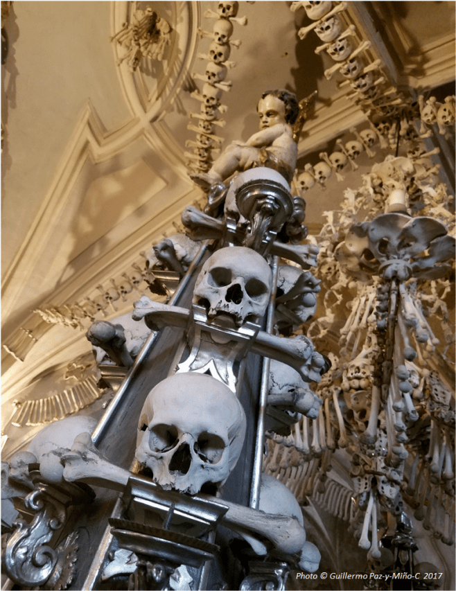 Above: ornament made of bones at the Sedlec Ossuary in Kutná Hora.