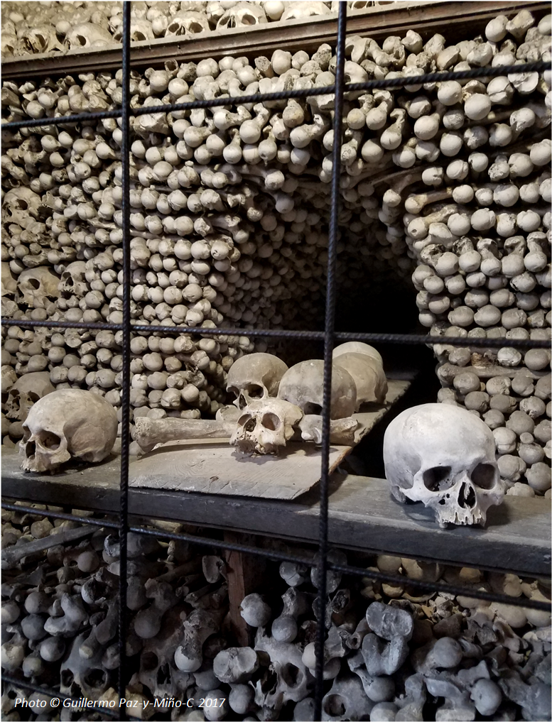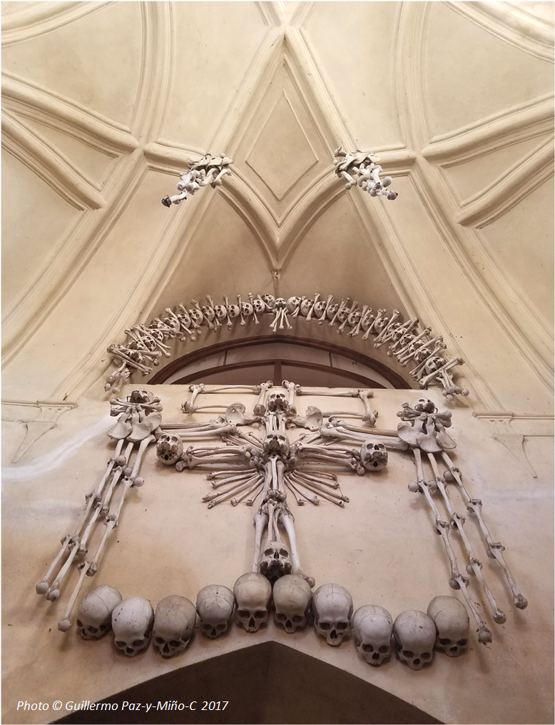 Above: shield of arms made of humans bones at the Sedlec Ossuary in Kutná Hora.