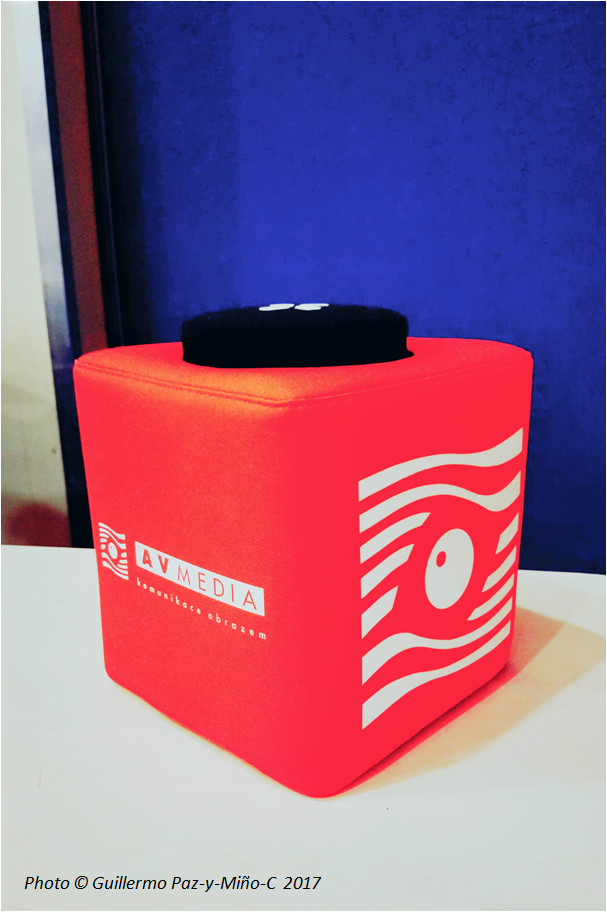 Above: What is this? A tossing MICROPHONE. Very clever. A 15-cm soft (spongy) cube equipped with a microphone inside. It can be tossed to the audience and expedite the Q&A. I think it does encourage people to participate and ask questions just for the fun of tossing and receiving the cube. The electronics are programmed to shutdown the noise while the cube is bouncing, but the microphone activates itself once stabilized at no-rough motion.