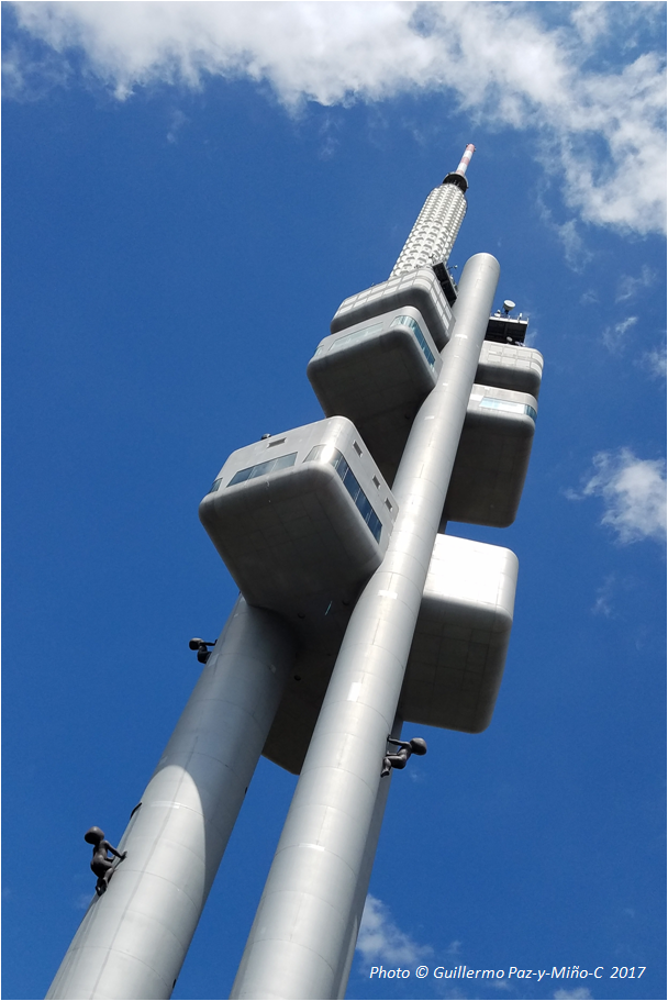 Above: Prague’s famous (or infamous) TV Tower, the babies climbing up are plastic replicas of the bronze “Babies” by David Černý.