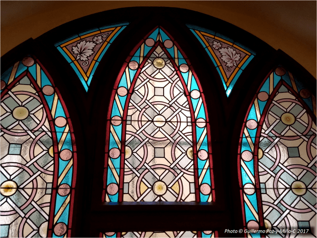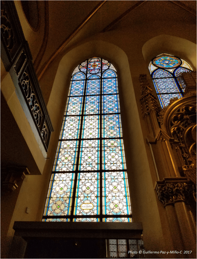 Above: stained glass next to central hall, the Maisel Synagogue.