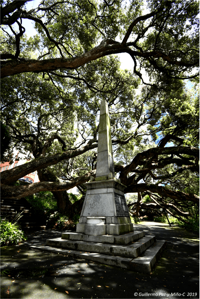 Above: a take of the beautiful “island of green” in the middle of the Auckland downtown; a vegetation patch with six old, very old imposing trees and their branches; each creature looks like a giant octopus..
