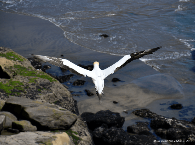 Above: Australasian gannet after attempting to approach its nest and mate, but too windy… another approach was necessary – Tasman Sea