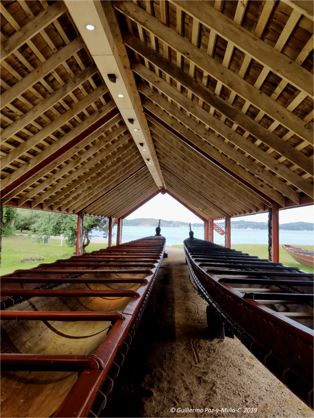 Above: Maori Warriors’ Canoes; the one on the left is for 100 people – Waitangi Treaty Grounds & Museum