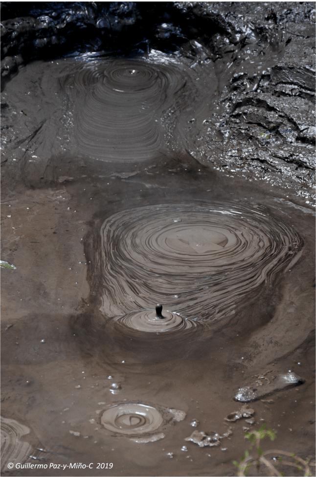 Above: mud pool at the moment of boiling; spot the drop – Te Puia
