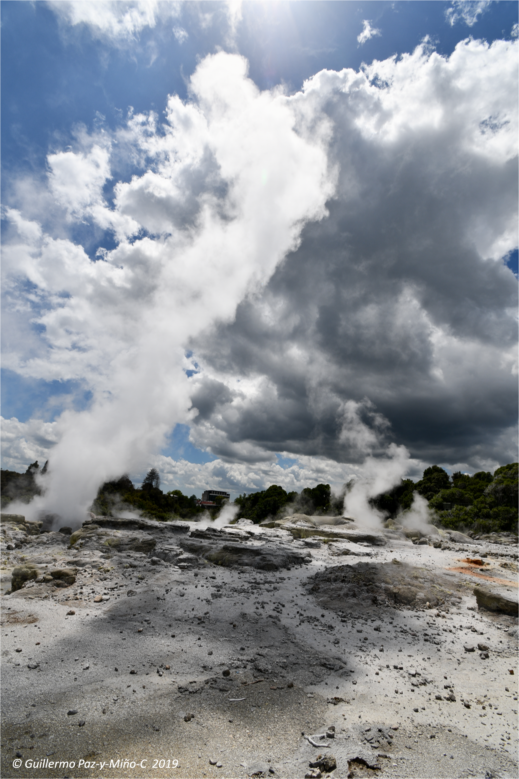 Above: The Pōhutu geyser in Te Puia, New Zealand – It erupts about 30-m (once-twice per hour)