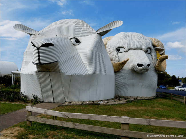 Above: sheep – At the town of Tirau, New Zealand – “The Corrugated -Iron Capital of the World”