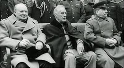 Winston Churchill (UK), Franklin Roosevelt (USA) and Joseph Stalin (USSR), The “Big Three,” at The Yalta Conference, 1945. They met to discuss the future of Europe after World War II. [Click for VIDEOS The Yalta Conference].