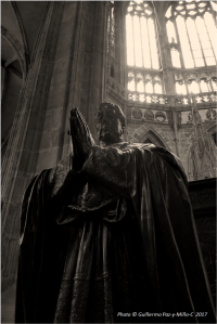 Above: Darkness in the Saint Vitus Cathedral; statue of Friedrich Johannes Jacob Celestin von Schwarzenberg.