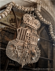 Above: shield of arms made of humans bones at the Sedlec Ossuary in Kutná Hora.