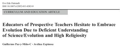 Acceptance of evolution by educators of prospective teachers remains superficially studied despite their role in having mentored schoolteachers whose weak support of evolution is known.